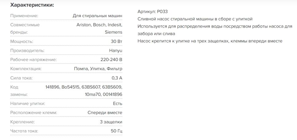 Насос HANYU(BOSCH 141874)в/з10MA70 63BS607 / 63BS609 P033 141896 — описание:З/Ч для стиральных мaшин ![]() ![]() ![]() ![]()