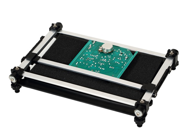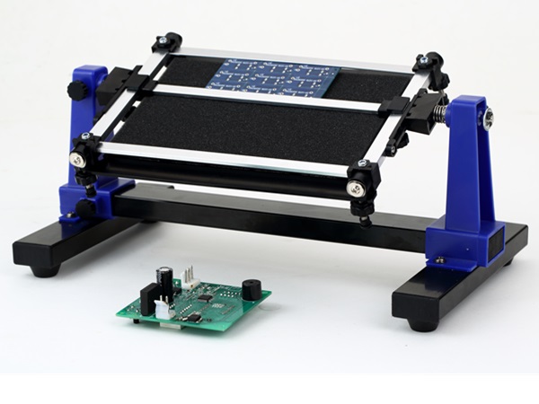 ZD-11ES держатель для печатных плат — описание:Паяльное оборудование Держатель печатных плат ZD-11ES - это инструмент, используемый при сборке, пайке и тестировании печатных плат. Оснащенный подвижными креплениями и регулируемой перекладиной, он обеспечивает стабильную поддержку плат во время работы, значительно облегчая любые действия, связанные с электроникой. Подставка позволяет быстро и легко адаптироваться к различным размерам и толщине плат, обеспечивая поддержку печатных плат с максимальным размером 160 x 80 мм и толщиной от 0,8 мм до 2,5 мм.
