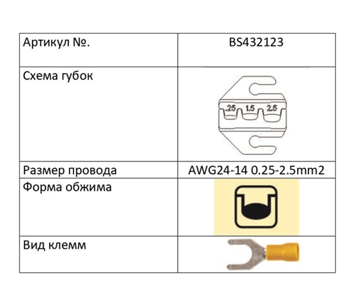 BS432123 Пресс клещи 0.25-2.5mm2 — описание:Инструмент ![]() ![]() ![]()