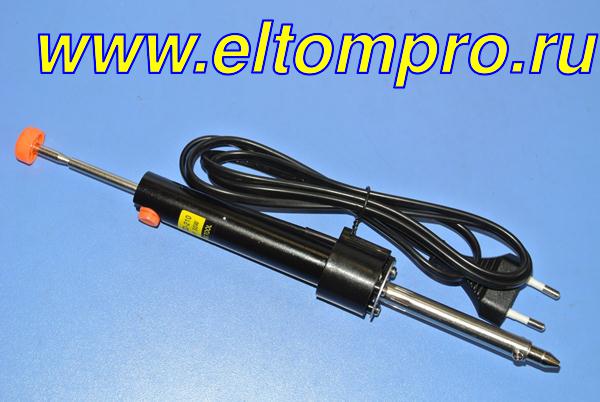 Электрический паяльник мощностью 220В/ 30Вт с оловоотсосом. Предназначен для монтажной пайки и лужения оловянно – свинцовыми припоями элементов радиоэлектронной аппаратуры и тонкостенных металлических изделий в производственных и бытовых условиях. Оснащен многослойным, долговечным (Long Life ) жалом